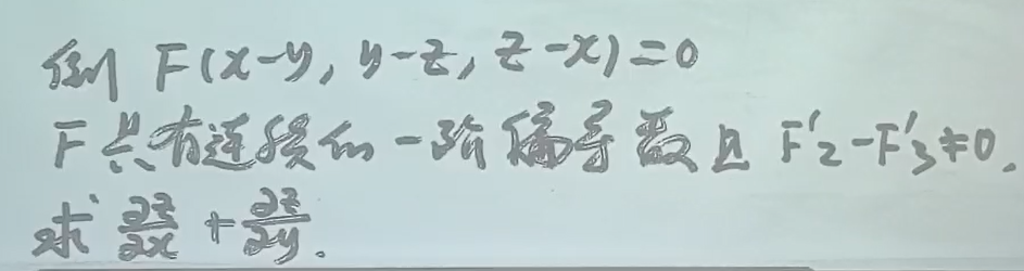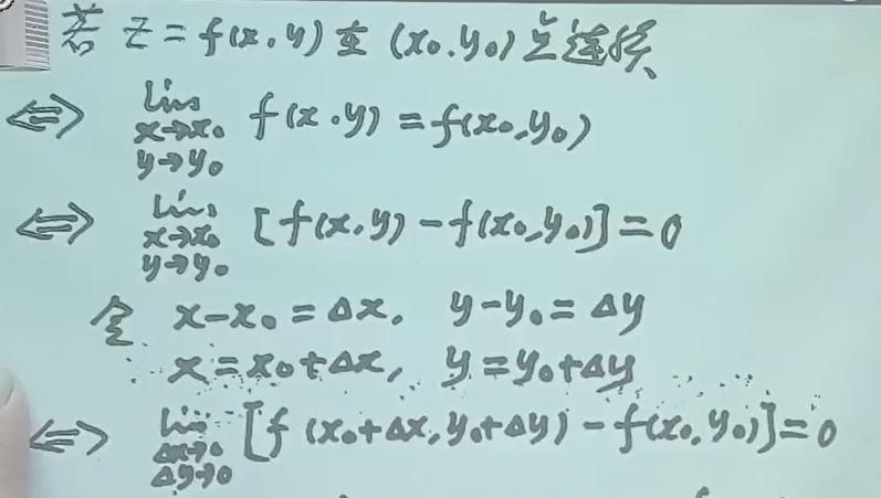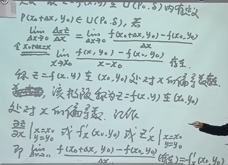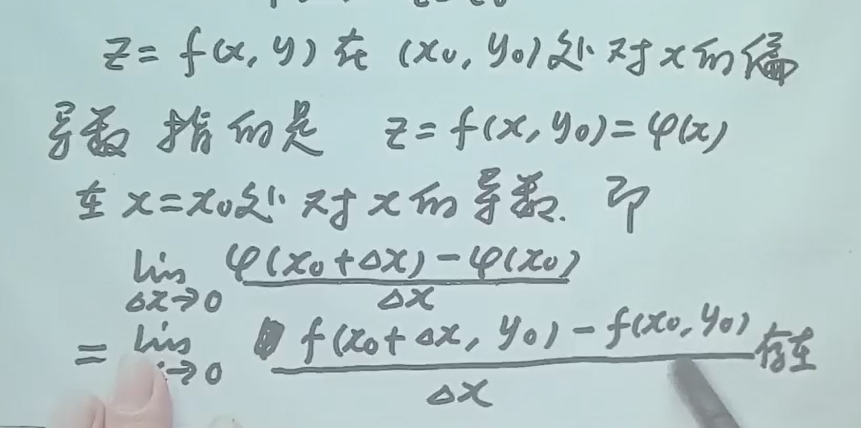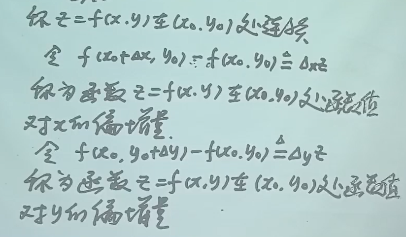 证明: 用偏导数的定义 \(\lim_{\Delta x \to 0} \frac {\Delta _x z}{\Delta x}\), 这时 \(\Delta y = 0\) (因为偏 \(x\))