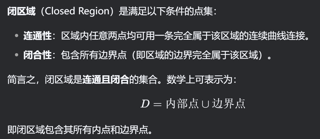 例如 \(x^2\) 是闭区域因为边界是空集,肯定被包含