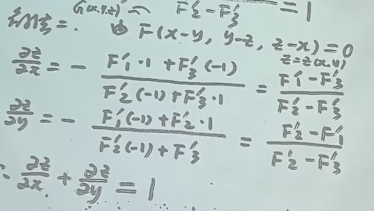 - 用偏导数定义:其他自变量都是确定值,对需要的那个求导