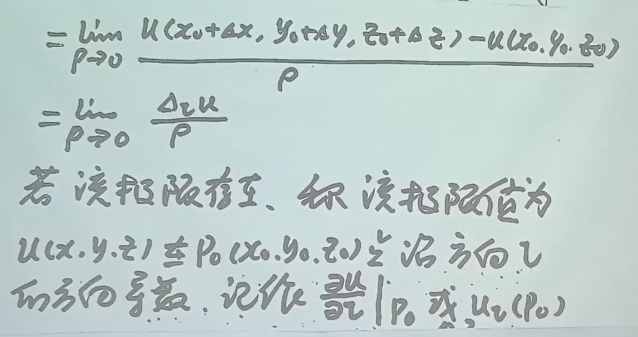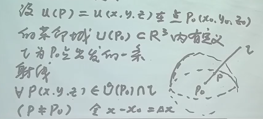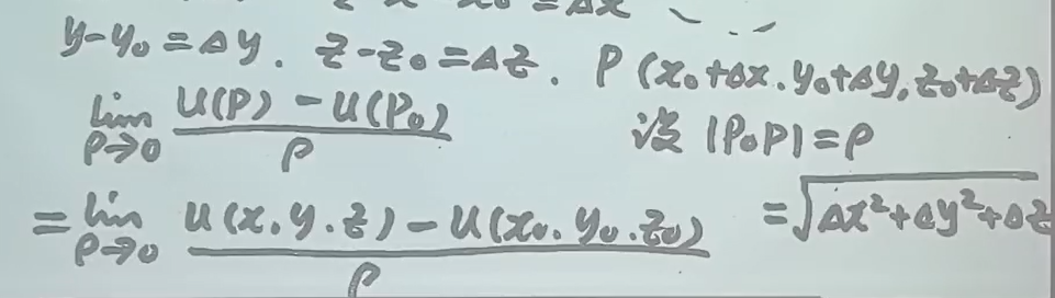 割线方向向量的极限,割线方向向量为 \((\delta x, \delta y, \delta z)\),同除 \(\delta t\) (参数),得到的就是三个偏导数。