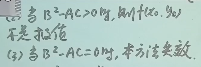 - 对于偏导数不存在点 和 \(B^2 - AC = 0\) 的点:用定义:在邻域内看是不是最大 / 最小的