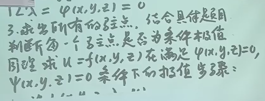 - 如果发现不在限制范围内,则内部没有极值怀疑点,则在边界,转换为等式