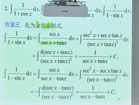 \(\int \tan^2 x \, dx\) 换 tan = sec^2 - 1