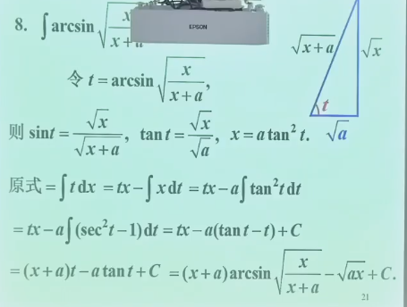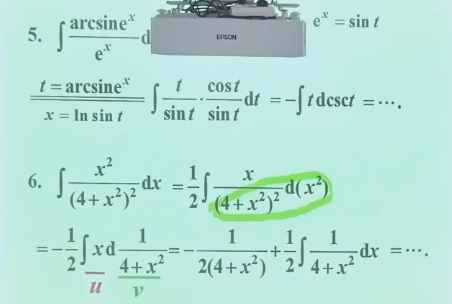 - 有 \(\arcsin\) 一定要用分步;单一 \(\arcsin\) 则用上面一个:\(1 * \arcsin\) 2. 用公式 3. 使用一次之后,含积分的部分不好求:考虑使用几次分部积分并 凑出原式