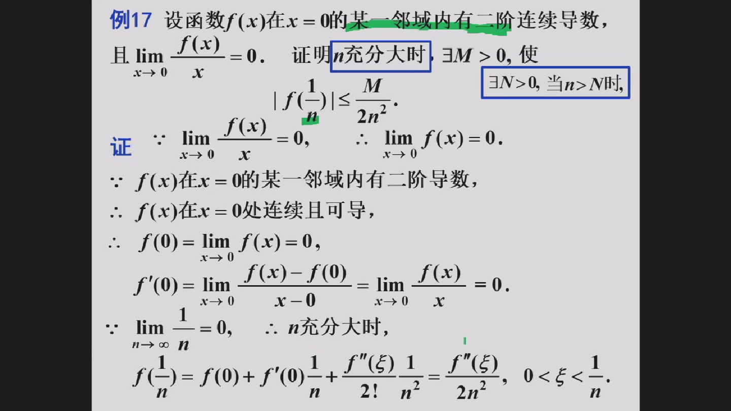 方法: 1. 列不等式 2. 重点:随便找一个常数\(c\)(半邻域的长度即 \(δ\)),利用\(x\)属于邻域,框定\(x\)的范围 3. 核心:用该范围放缩不等式(有目标意识不等号意识),使之变成\(k|x - x_0|\)形式 4. 用邻域,代入\(δ\),求出\(δ(ε)\) 5. 取\(δ = min\{δ(ε), c\}\)