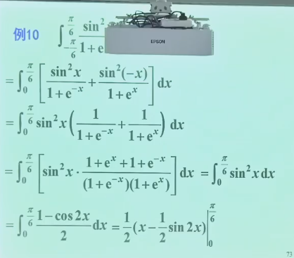 公式:\(\int_{-a}^{a} f(x) \,{\rm d}x = \int_{0}^{a}[f(x) + f(-x)] \,{\rm d}x\)