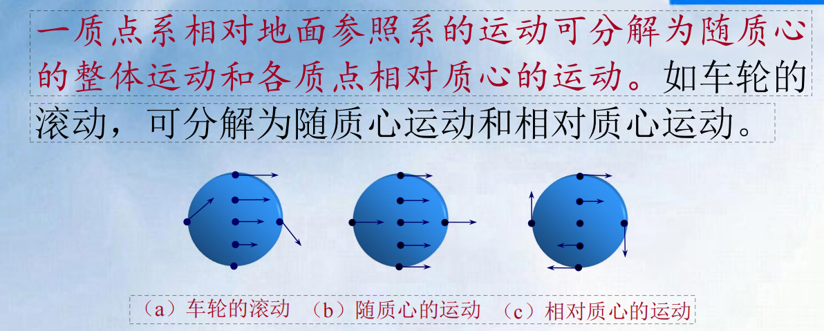 质点系相对地面的运动 = 随质心整体运动 + 各质点相对质心的运动