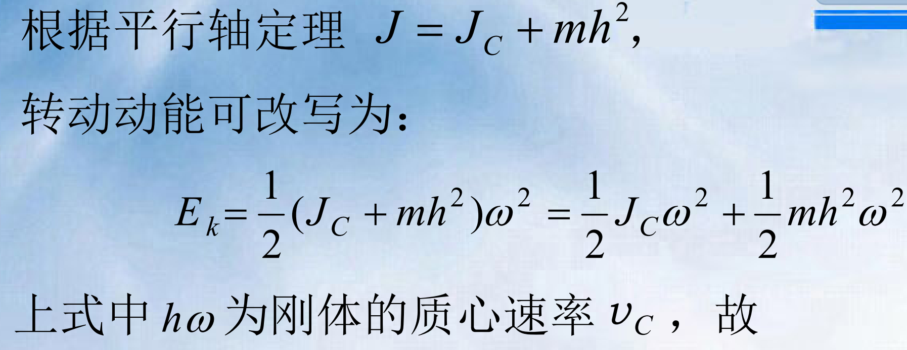 动能 \(\frac12 m v^2\) \(v = \omega r\) \(J = mr^2\) 所以可以推过去,为什么用 \(J\)?因为是刚体,要积分,\(J\) 就是积出来的